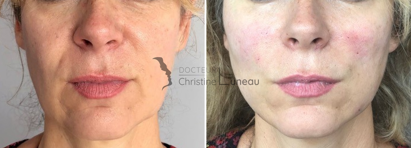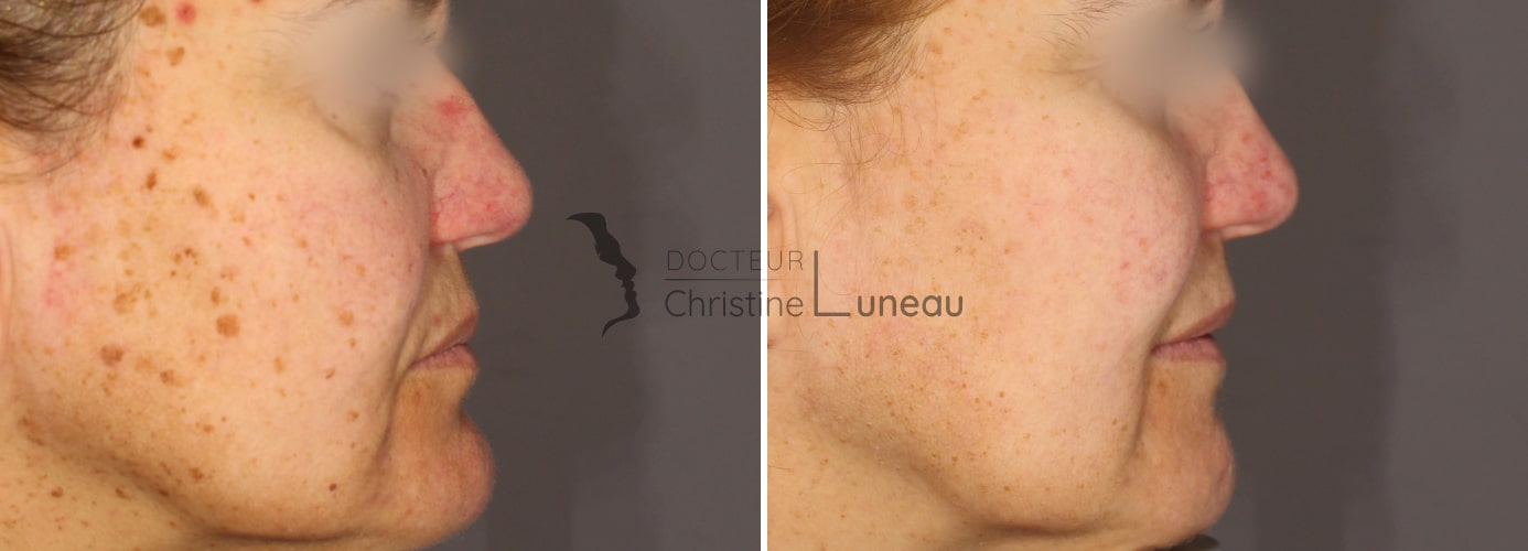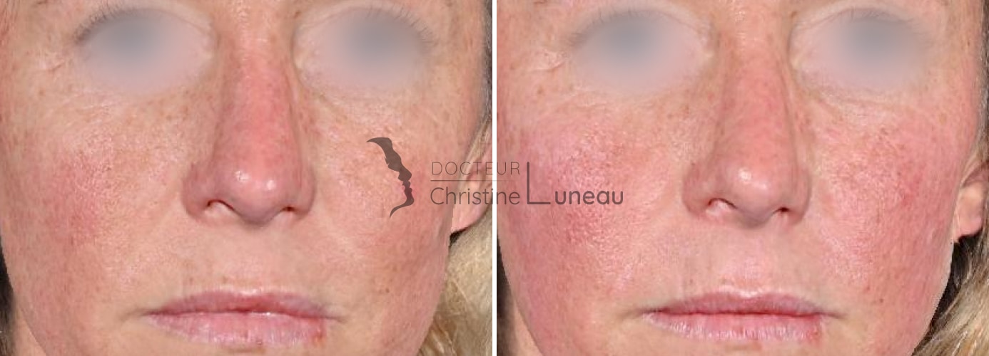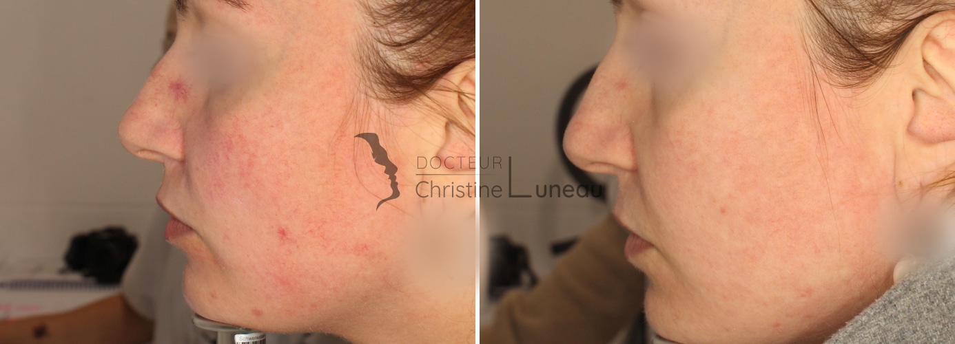 Bonjour, un traitement cosmétique adapté associé à un nettoyage de peau dermatologique suivi d’un peeling léger sera très efficace. Un Hydrafacial peut également être couplé pour optimiser le résultat. Bien cordialement